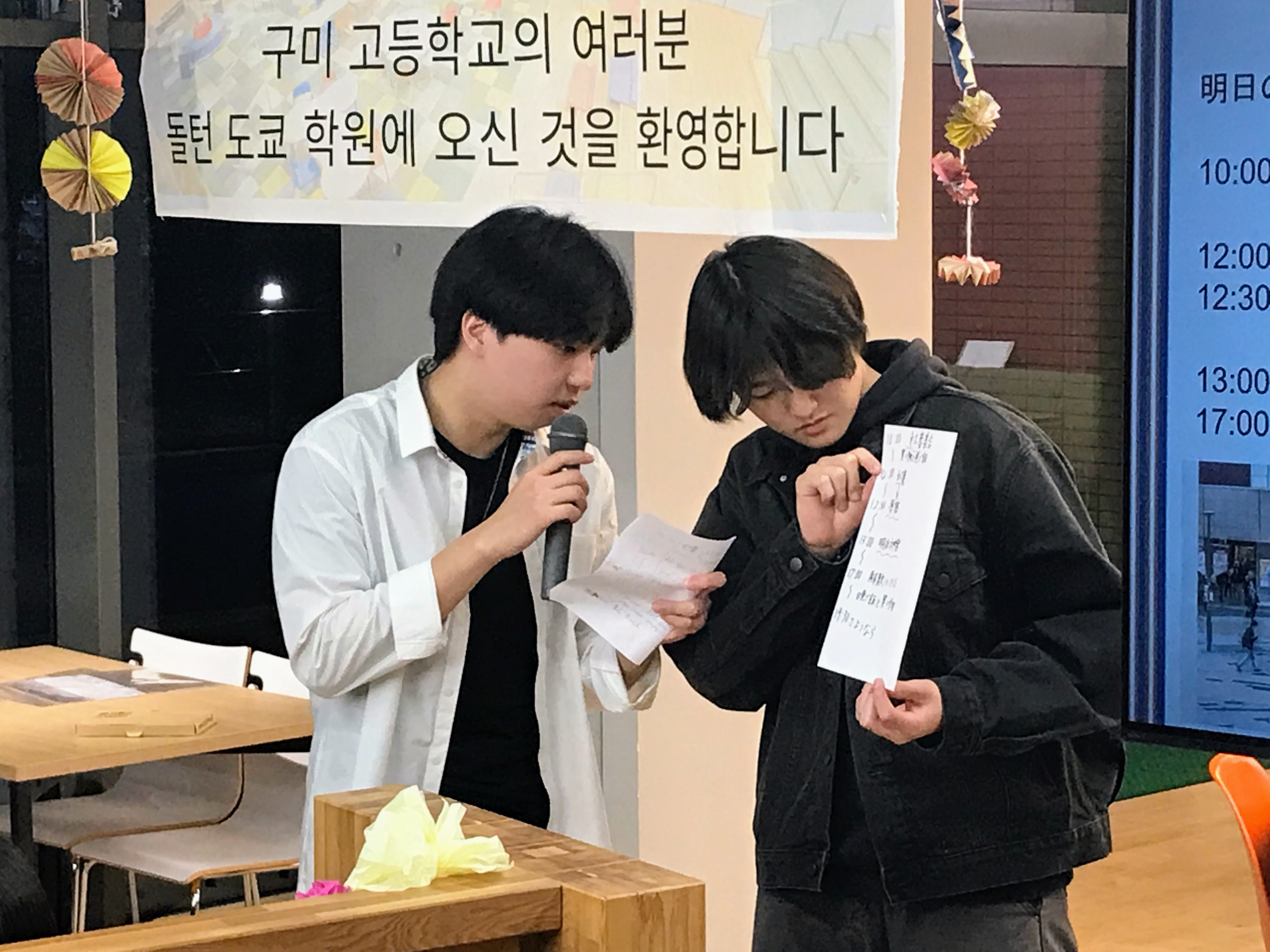 昨年夏の海外研修でドルトン生がお世話になった韓国グミ高校から、1/12(金)、20名の生徒がドルトンを訪問してくれました。グミ高校の生徒は皆、日本語がとても上手く、ドルトンの生徒達とプレゼント交換、校内見学、ゲーム、都内ツアーなどで交流を深めました。