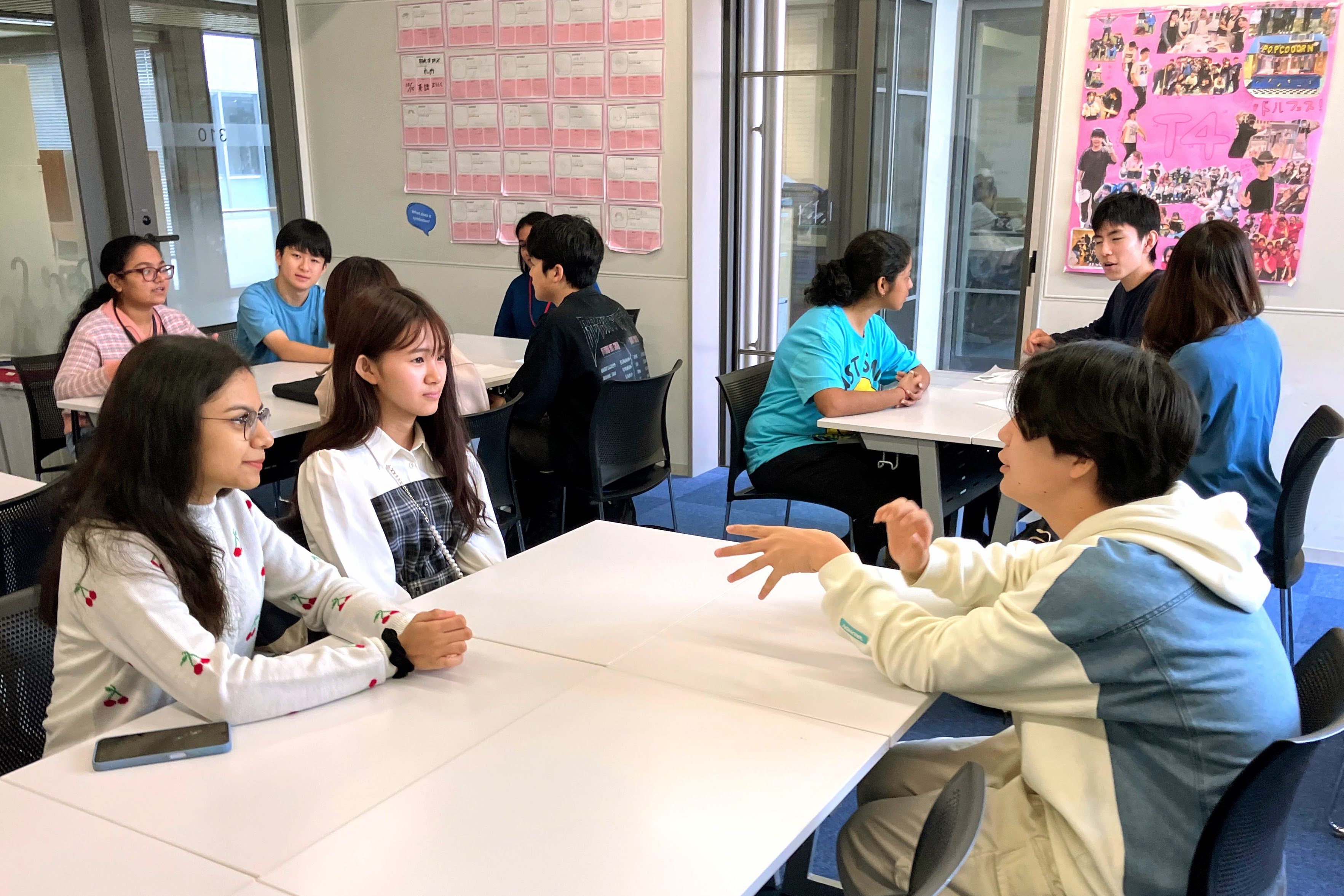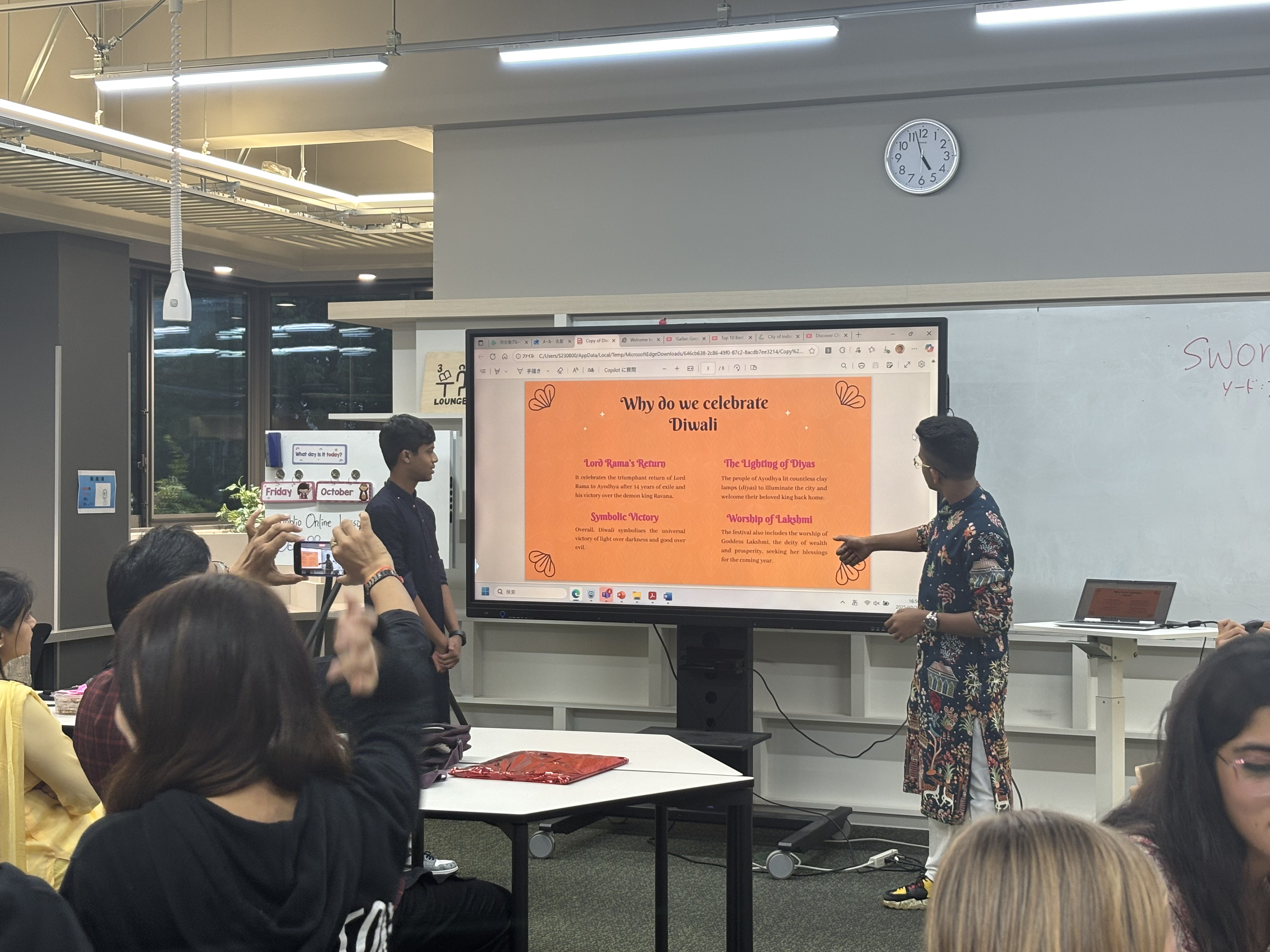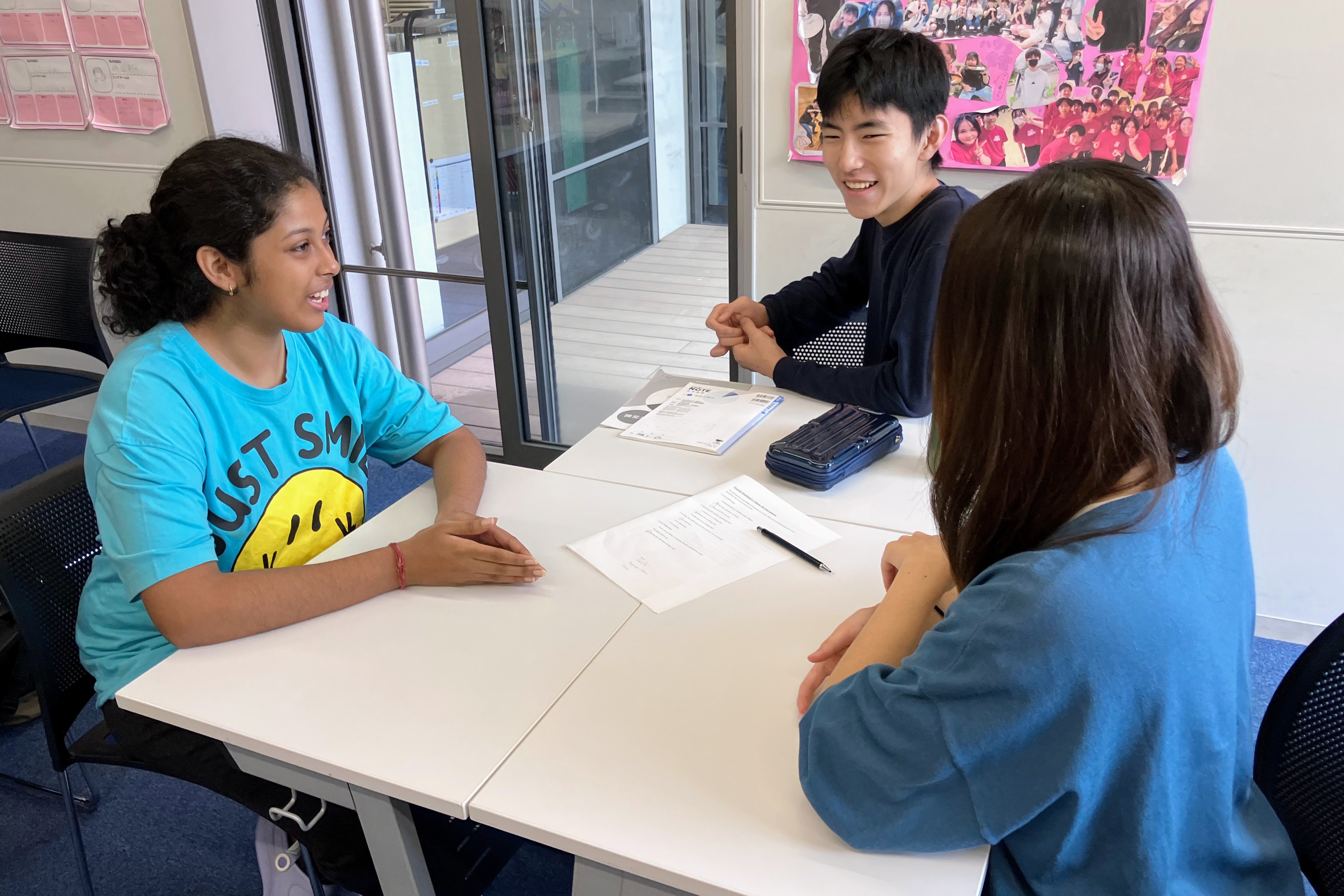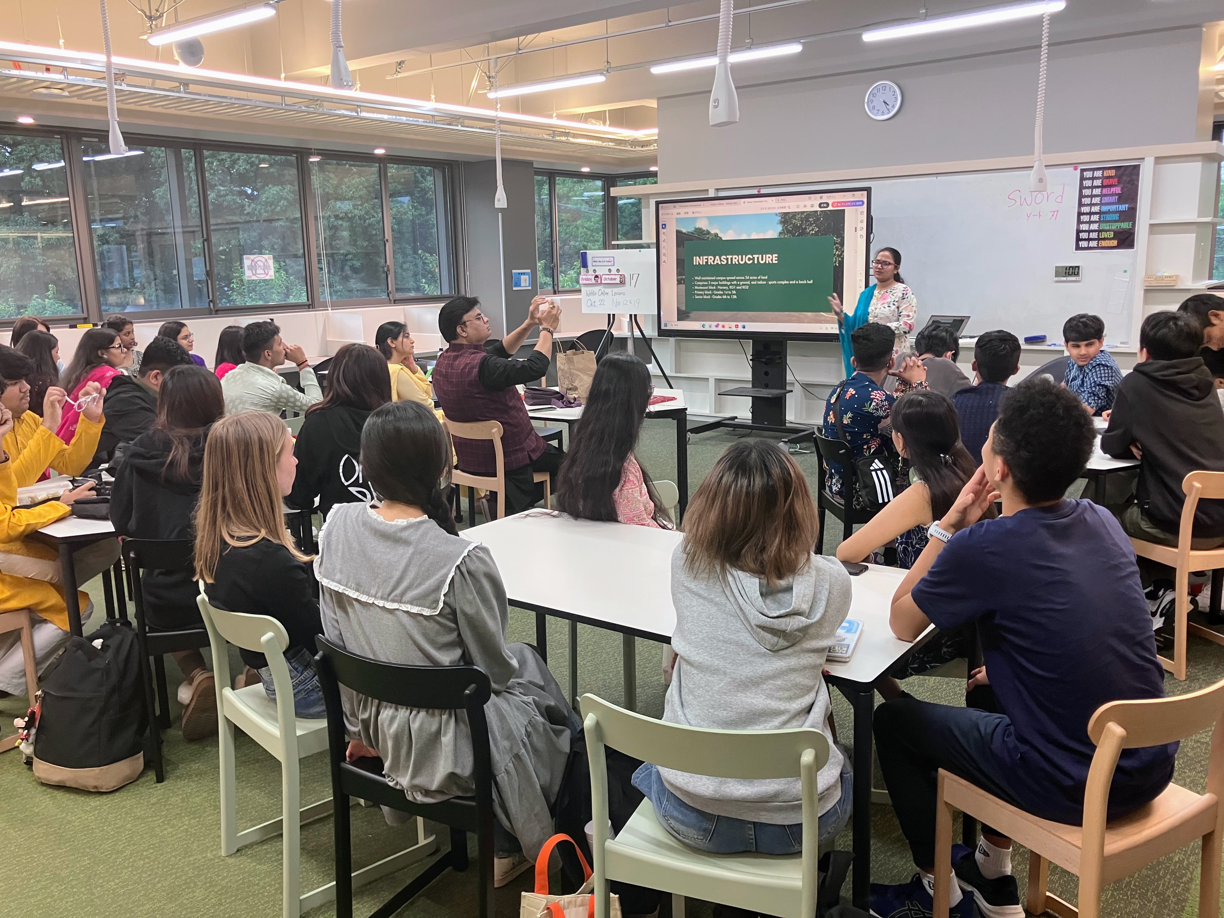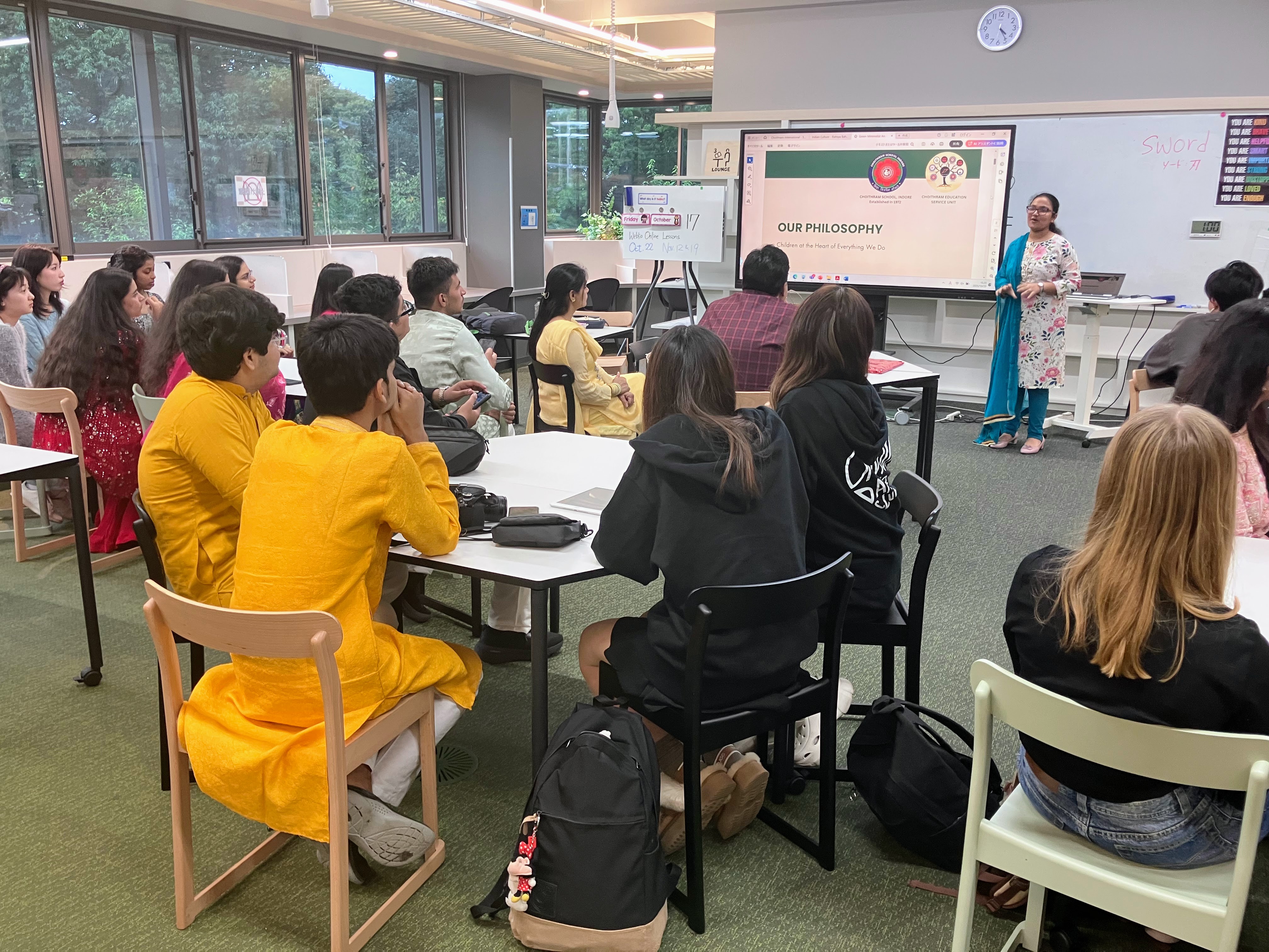 10/20(月)、インドのマディヤ・プラデーシュ州 インドールにあるインターナショナルスクール、Choithram Schoolの生徒達が来校し、ドルトンの生徒達と英語の授業で意見交換したり、異文化交流ワークショップを行ったりしながら、交流を深めました。