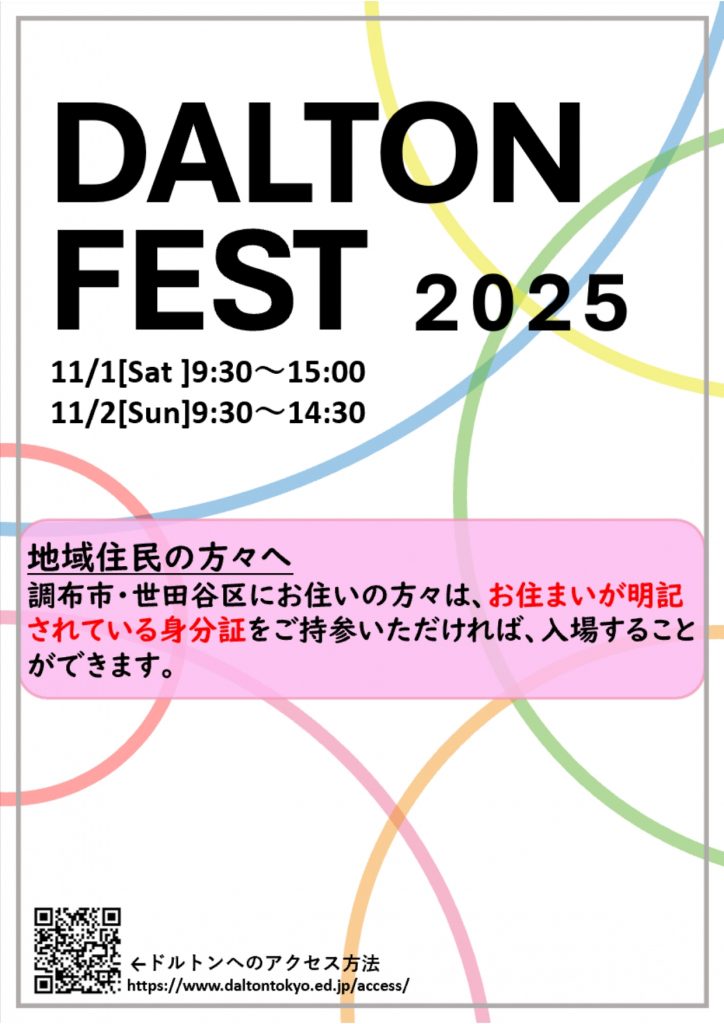 近隣住民(調布市・世田谷区)にお住いの皆様へ:学園祭 Dalton Fest 2025 につきまして