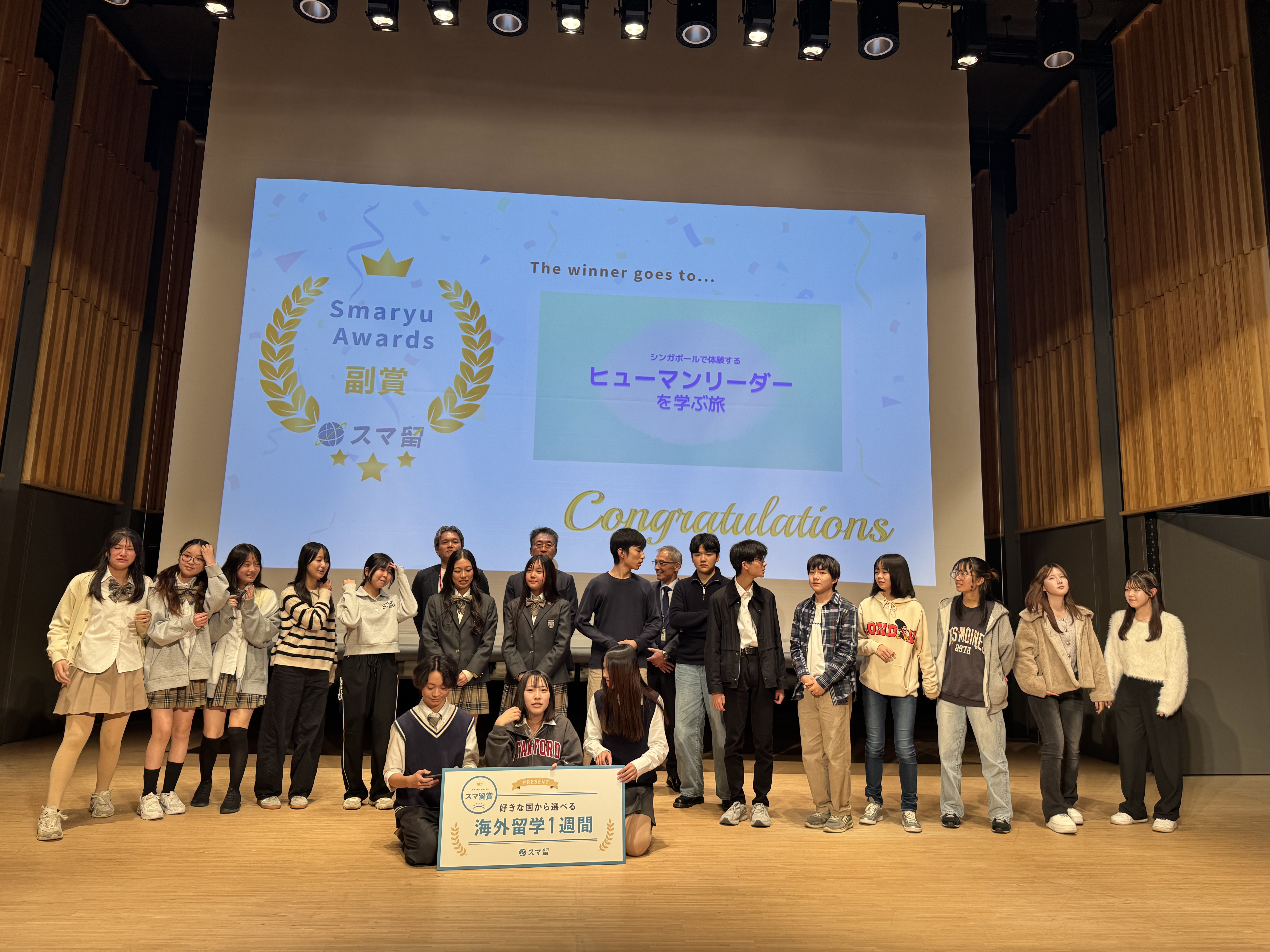 12/19(水)、海外留学エージェント『スマ留』との協働で、生徒が生徒のための留学プログラムを企画するコンテストが行われ、校内予選を勝ち抜いた9チームがプレゼンしました。